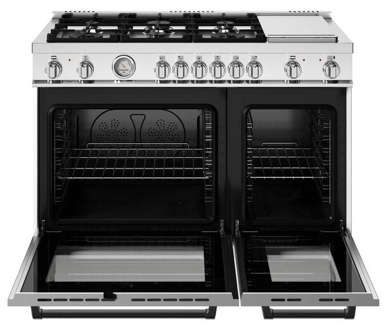 - Both ovens include convenient soft-motion doors. The edge-to-edge interior oven glass door maximizes interior volume and can be wiped clean without effort.