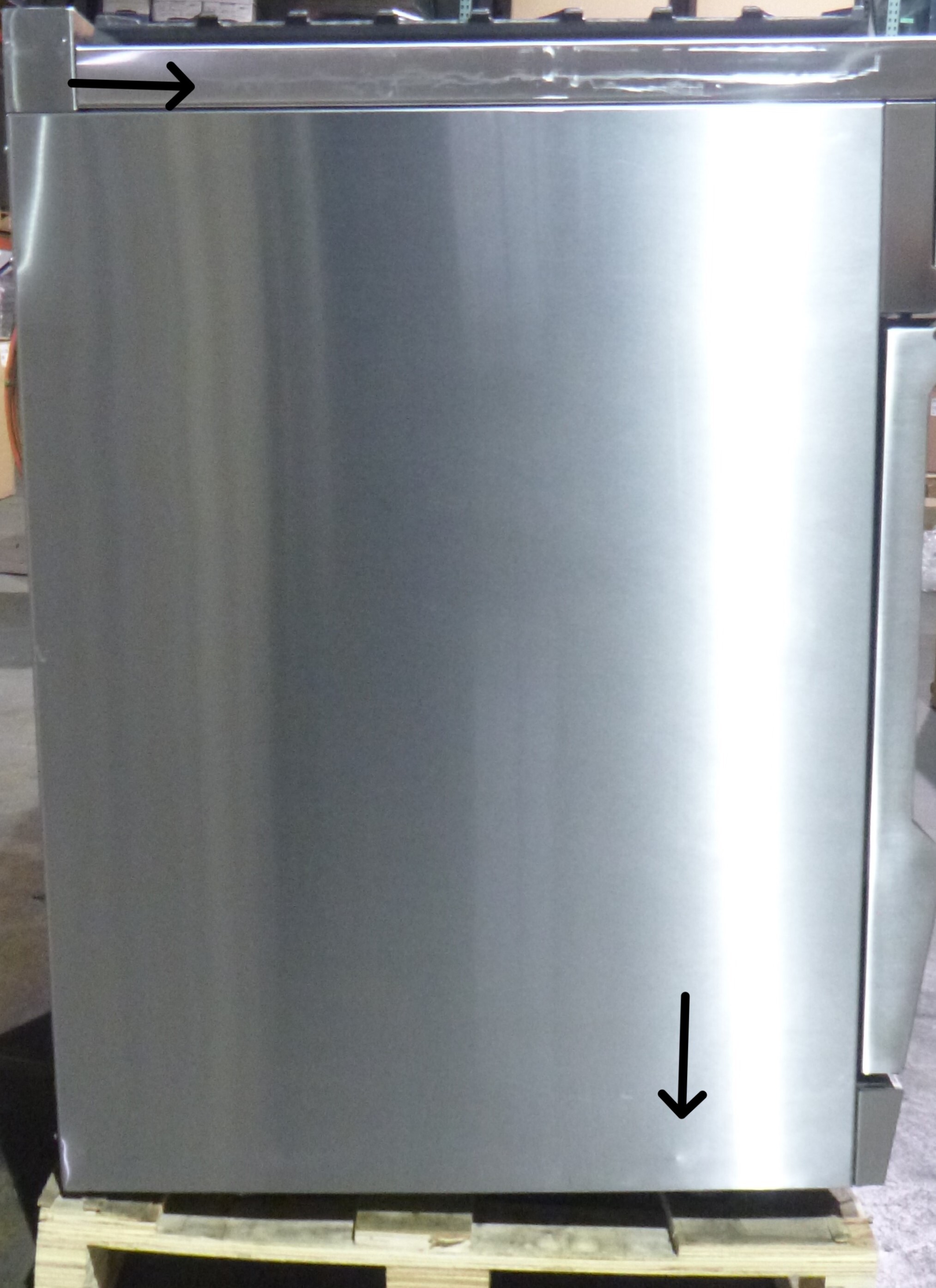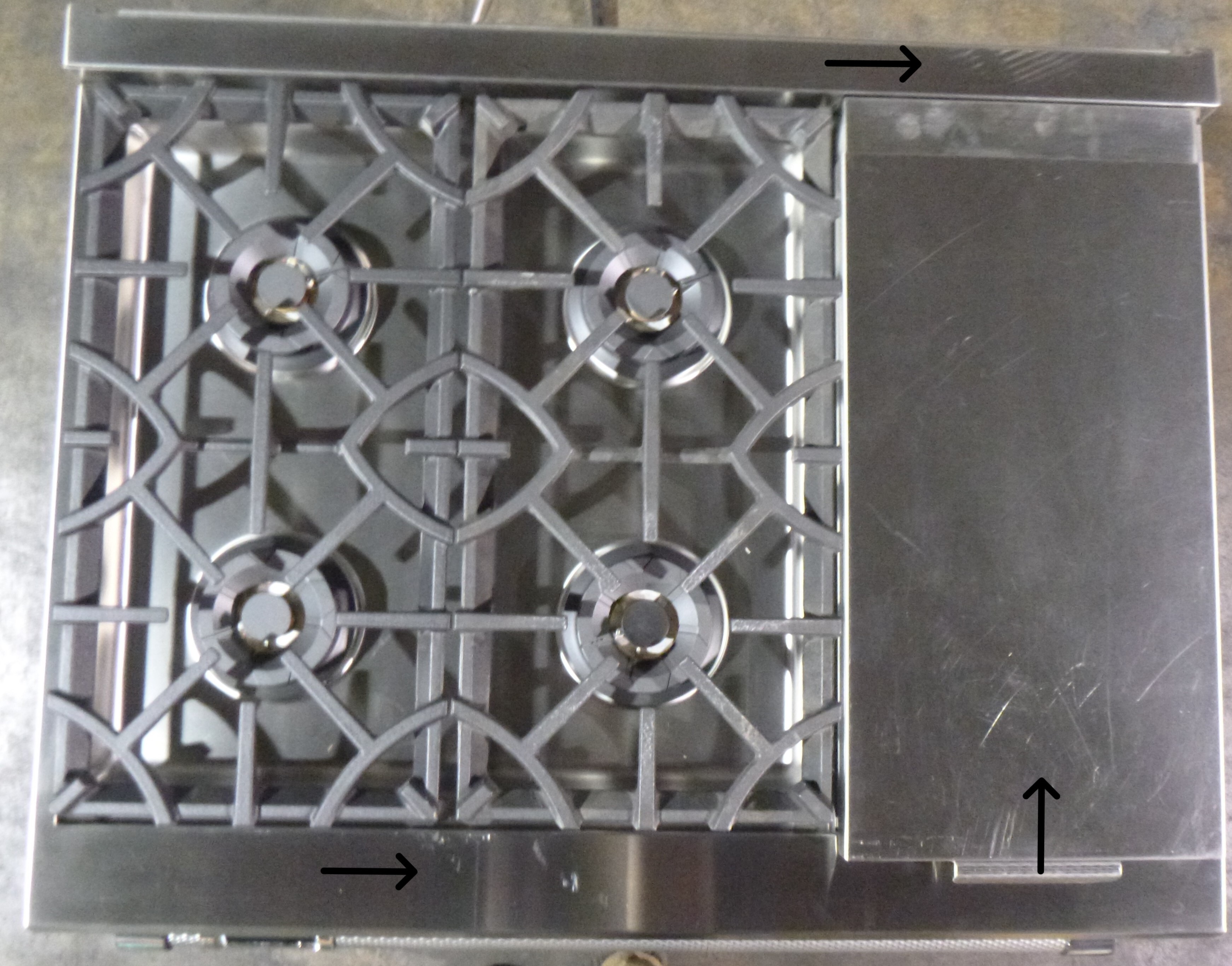 PICTURES OF ACTUAL UNIT ARE LISTED ABOVE.  There is a bit of cosmetic damage. Both the left and the right side of the worktable have scratches as well as the top, the griddle cover has scratches all over it, and the back trim has some scratches on it. The left side panel has a couple dents on it towards the bottom.