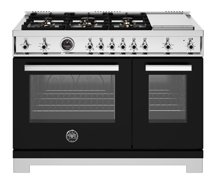48 Inch Freestanding Gas Range with 6 Sealed Burners, 7.1 cu. ft. Total Capacity, Dual Convection, and Electric Griddle: Nero Black, Natural Gas