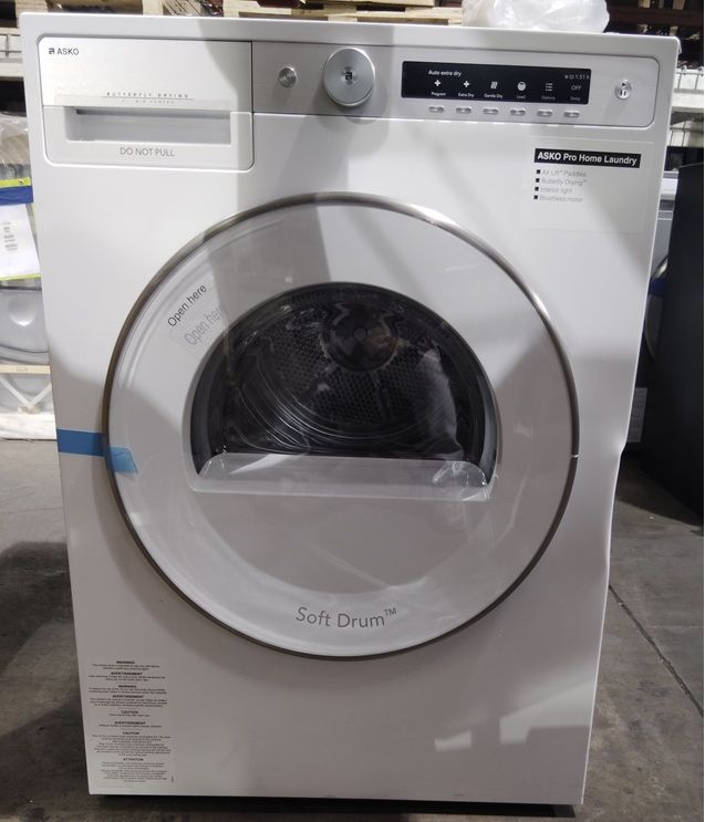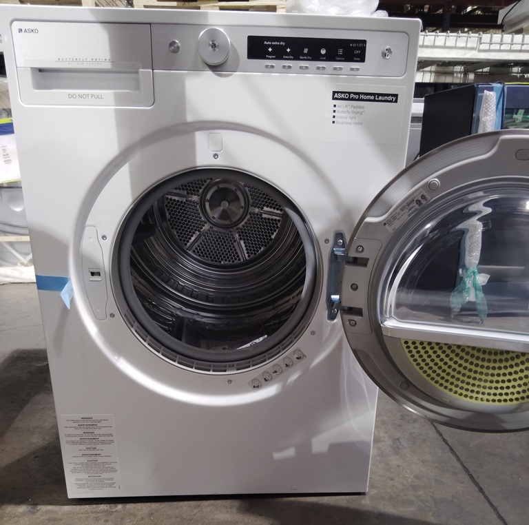 Asko T611VUW Style Series 24 Inch Electric Dryer with 5.1 cu ft Capacity-15 Dry Cycles-Butterfly Drying System-Stainless Steel Drum-Soft Drum-White-TD85.2-586321 - Out of box, not used, operational with some cosmetic defects