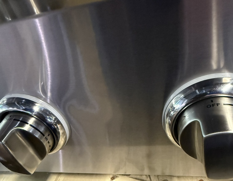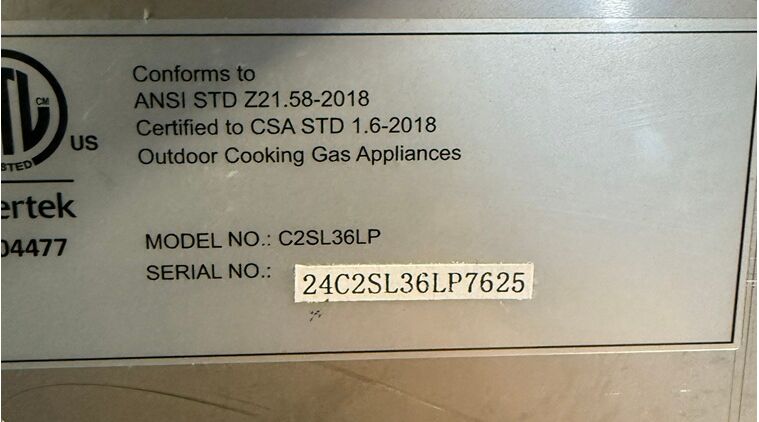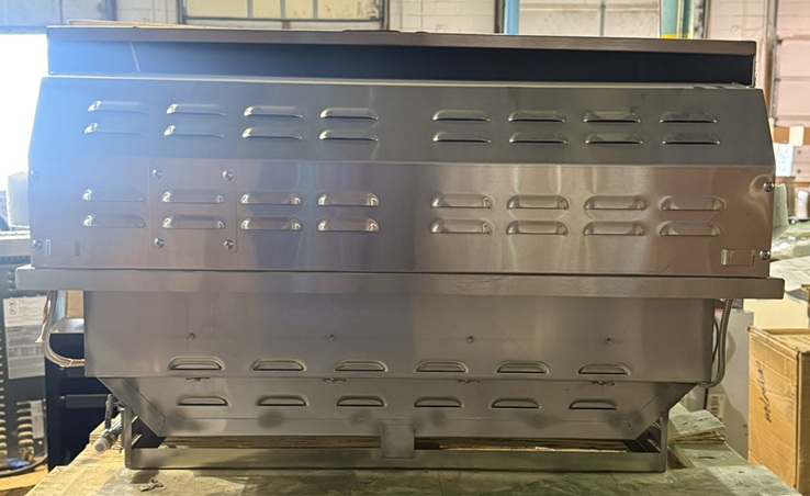 ** Unit was inspected by a technician and found to be fully operational. There is a small dent on the control panel by the far left knob, there are a few scratches on the front of the grill, there is a tiny dent on the left side of the back guard, it has never been used or installed. SN: 23C2SL36LP6579 **