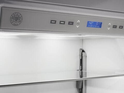 The REF30PIXR internal configuration of the Bertazzoni 30" bottom-freezer refrigerator is designed for maximum flexibility. The storage capacity is 11 cu. ft. of refrigerator volume and 2.9 cu. ft. of FlexMode. The FlexMode Refrigerator-Freezer allows to switch bottom compartment between freezer and refrigerator with one touch. Interior LED lighting on top and sides provide optimized interior illumination on all levels with minimal energy consumption. The integrated water filter connected to the water line ensures regular production of ice cubes of customizable size.