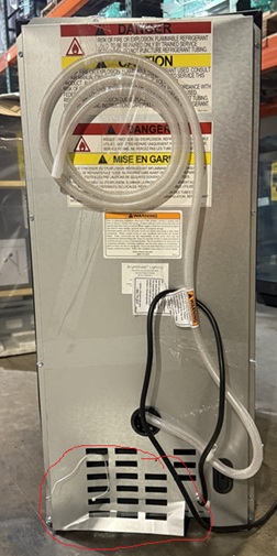 ** Serial 2419390080111 Unit has been checked by a technician, found to be fully functional. Unit is dented on the top by the back edge, the right side has a dent on the lower back corner, and the back panel has been bent out on the bottom. Photos of unit above. **