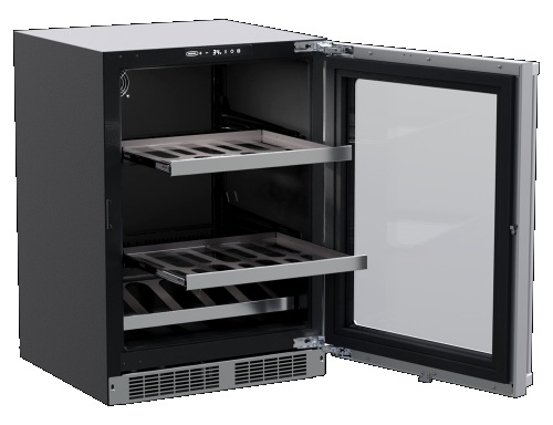 - Stores 19 wine bottles total (14 flat, 5 cradled) and hold (108) 12-oz cans.