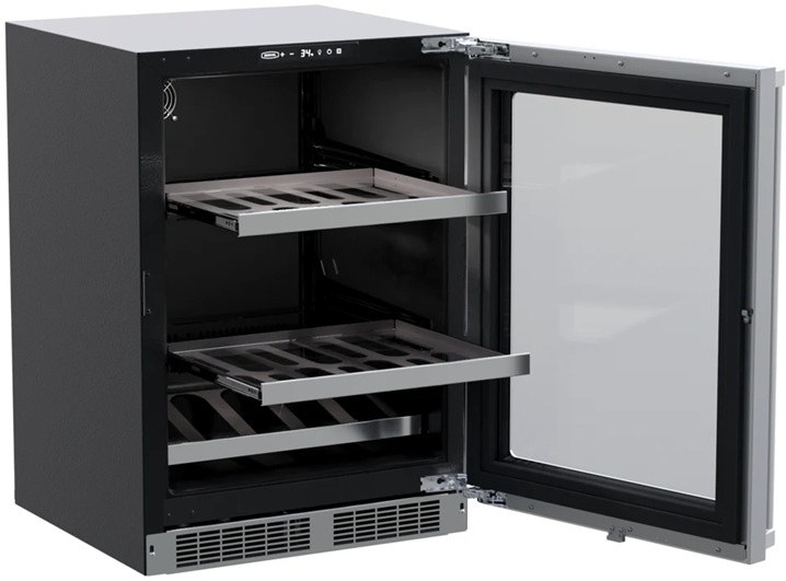 - Stores 19 wine bottles total (14 flat, 5 cradled) and hold (108) 12-oz cans.