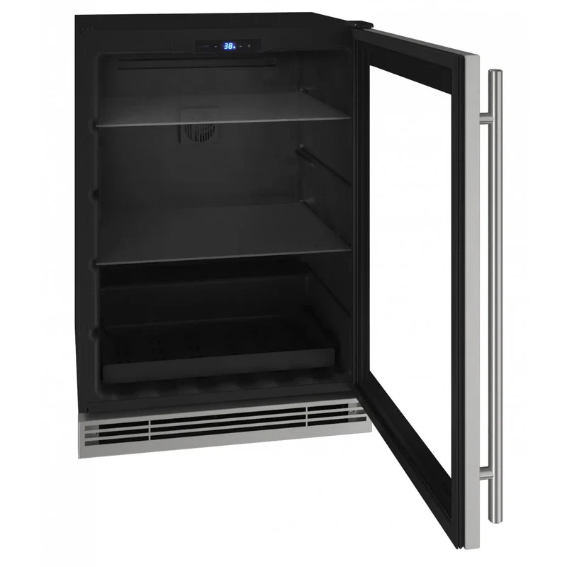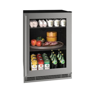 U-Line UHRE124-SG81A Glass Refrigerator 24 In Reversible Hinge Stainless Frame 115v BrightShield