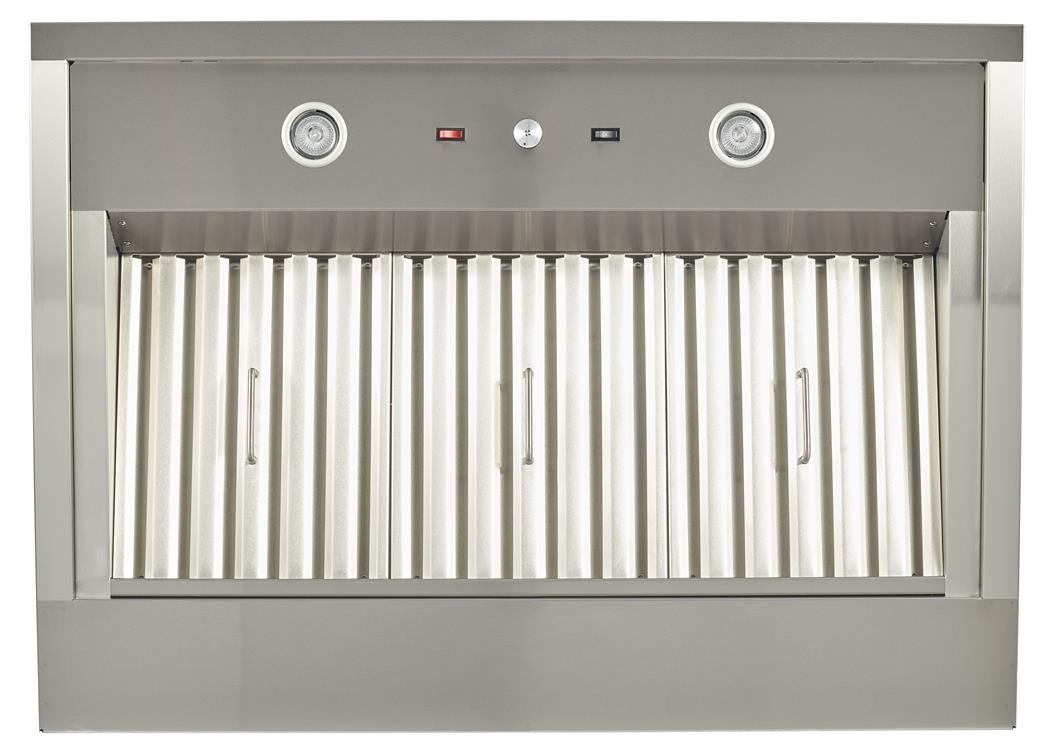 42 Inch Stainless Steel Chimney Hood for Outdoor Grill with Flue, Variable Speed Control, Heat Sentry, Halogen Lighting, Easy-Clean Baffle Filters, and Removable Grease Drip Rail