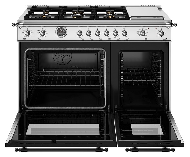 - 8-pass electric broiler in the main oven for broiling and grilling, with optional convection, and a 6-pass electric broiler in the auxiliary oven.