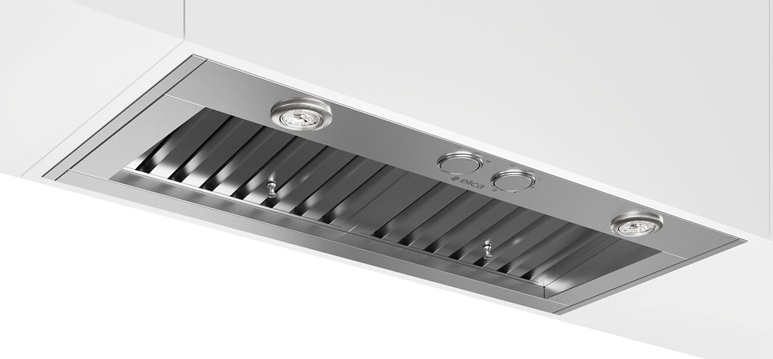 Elica ESC146SS 46.5 In Scanno Insert - 1200 CFM - Baffle Filters - Fully Recessing Stainless Rotating Knobs with Blue Illumination- Out of box, not used, operational with some cosmetic defects
